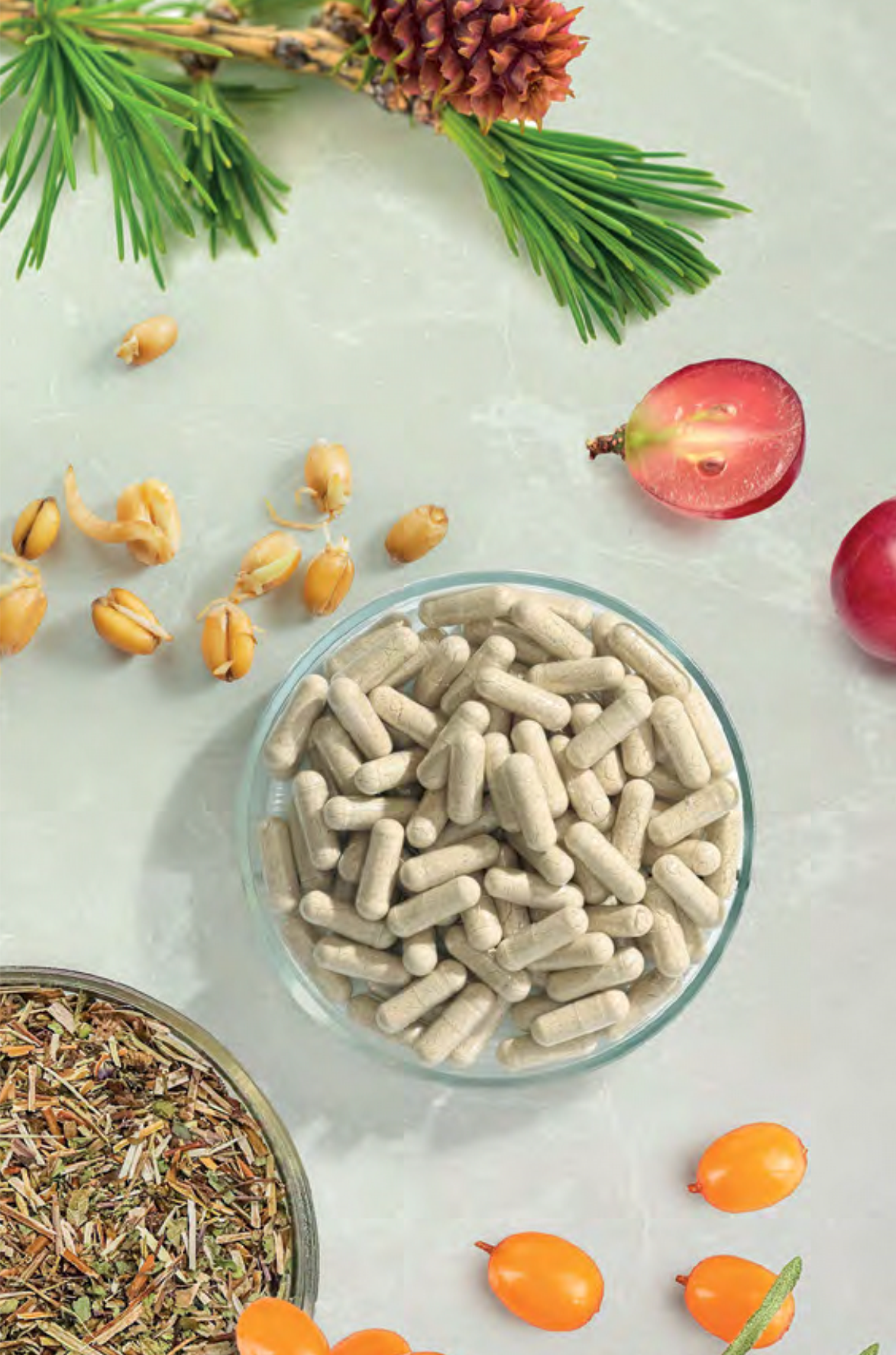 Дигидрокверцетин – это природный биофлавоноид. Он содержится в древесине сибирской лиственницы. Он считается супер эффективным природным адаптогеном, который комплексно положительно влияет на организм и повышает его устойчивость к различным внешним негативным воздействиям. В составе средства не только дигидрокверцетин, но целый комплекс экстрактов растений, которые усиливают эффект и воздействие адаптогена – и работают по нескольким направлениям. Это СО2-экстракты шиповника, зародышей пшеницы, виноградных косточек, ягод облепихи. В сумме все эти составляющие обеспечивают концентрат дигидрокверцетина мощными общеукрепляющими свойствам.