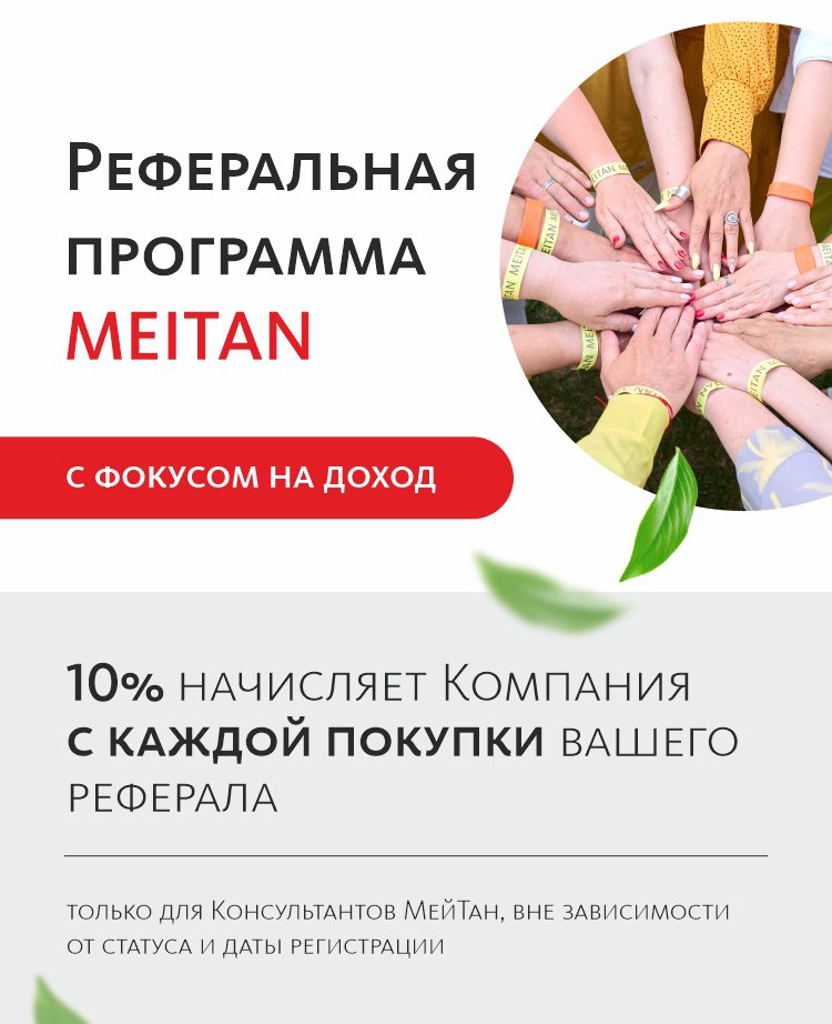 Реферальная программа позволяет заработать за покупки друзей и знакомых 10%. Большая Команда — большой доход! Перейдите на страницу Реферальная программа МейТан | Онлайн-инструмент для продаж и развития бизнеса для участия в программе.