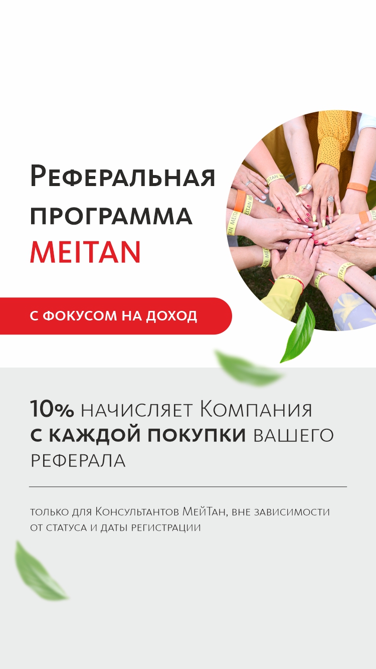 Консультанты МейТан сами выбирают свой путь в Компании. Для кого-то в приоритете только продукт. Кто-то начинает пользоваться сам, а затем рекомендует его друзьям и знакомым с помощью реферальной программы. А есть те Партнеры, которые рассматривают для себя Компанию, как источник дохода.