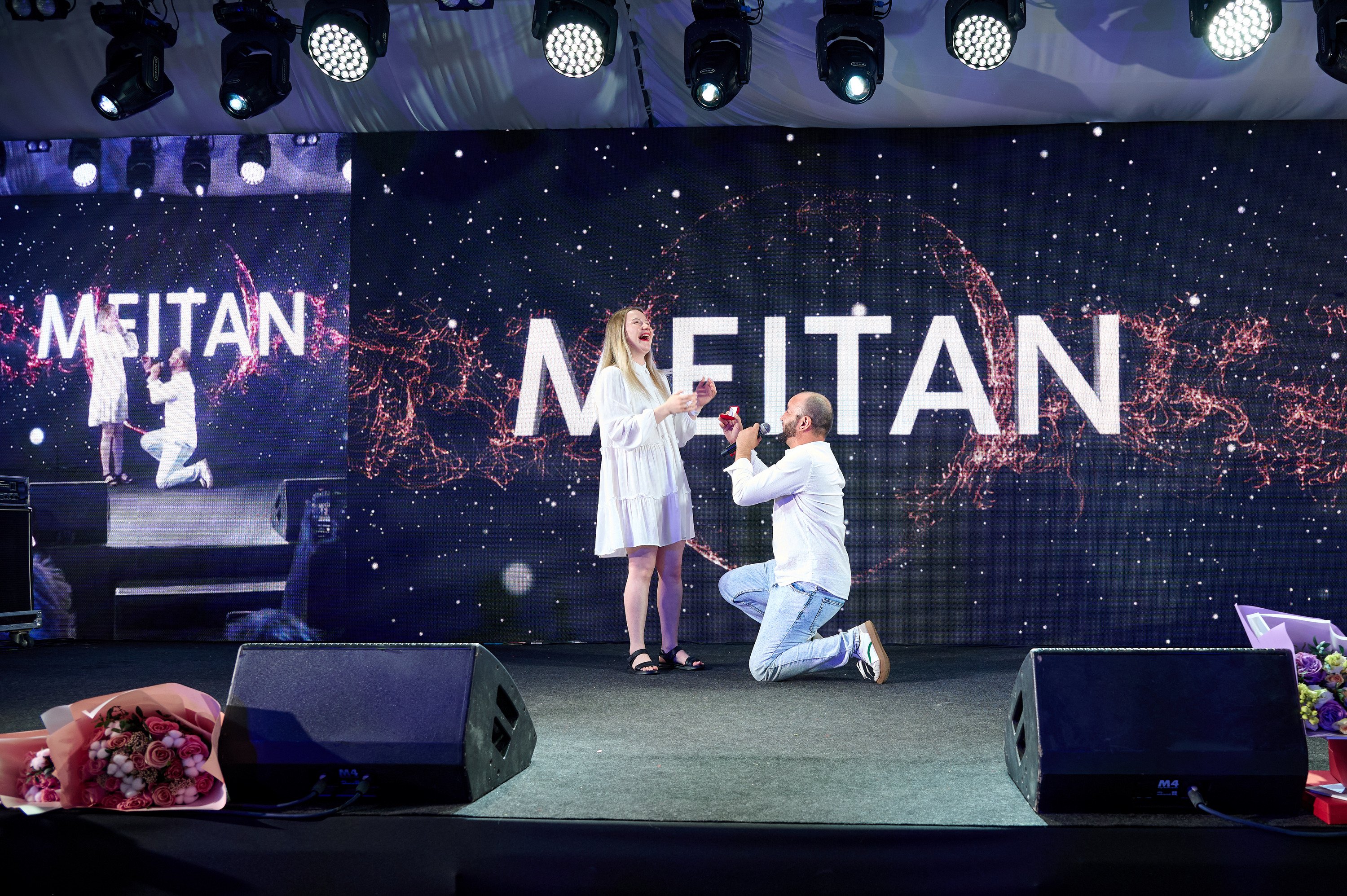 Мужчина признался, что все время было как-то не до этого. Но на 20-м Дне рождения Компании МейТан в июне 2023 года он решился. И сделал любимой предложение прямо на сцене.