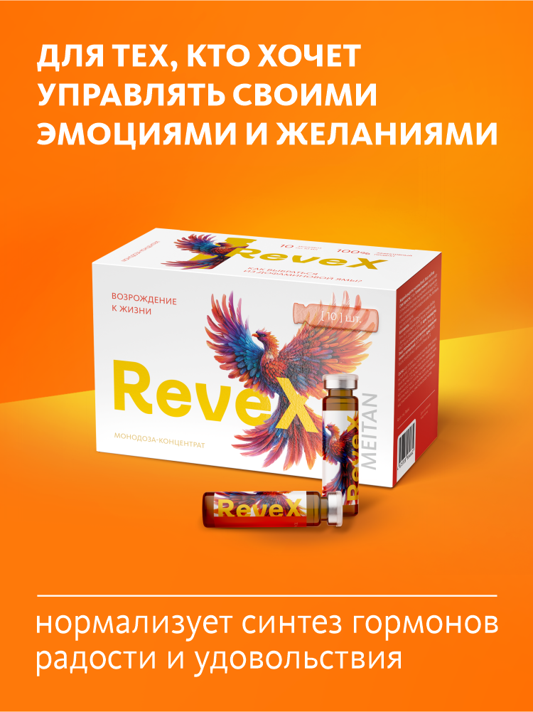 Для разрыва замкнутого круга важно комплексное восстановление. Жидкий концентрат RevеX — это натуральное решение для нормализации уровня дофамина и серотонина, снижения тревожности и улучшения эмоционального состояния.