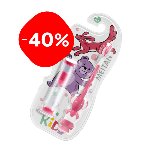 Детская зубная щётка с песочными часиками. Аккуратно очищает эмаль за счёт мягкой щетинки. Эффективно удаляет налёт даже в труднодоступных местах, предотвращая повреждение нежных дёсен. А песочные часики научат ухаживать за полостью рта по всем правилам гигиены.