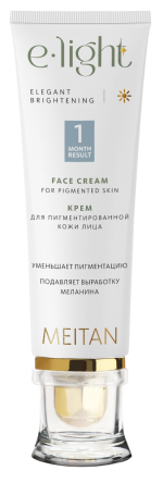 С кремом для депигментирования кожи E-light ваша кожа не просто выглядит более сияющей, а словно светится изнутри! Крем обладает высокой антиоксидантной активностью, способствует осветлению пигментации, тонизирует и омолаживает кожу. Ровный тон и сияние кожи через 2 недели применения, заметное осветление пигментации через 1 месяц.