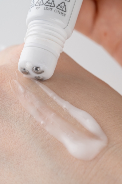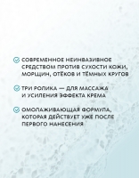 Аква-крем с коллагеном, эластином и гиалуроновой кислотой стимулирует синтез собственного коллагена, устраняет сухость и шелушение, укрепляет и подтягивает нежную кожу век, разглаживает мимические морщинки. Охлаждающий массажёр с тремя роликами улучшает лимфоток и кровообращение, уменьшает отёки и тёмные круги, снимает усталость и напряжение, способствует проникновению активных веществ крема в глубокие слои кожи.