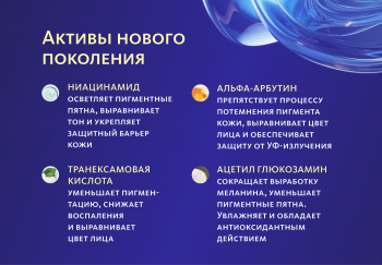 бутиленгликоль, вода, ниацинамид, экстракт цветов вишни Осима, экстракт отрубей пшеницы, дипропиленгликоль, альфа-арбутин, транексамовая кислота, ацетил глюкозамин, каприлгидроксаминовая кислота, этилгексилгилцерин, 1,2-гександиол, экстракт трутовика лакированного (рейши), феноксиэтанол, гидроксиацетофенон, экстракт листьев розмарина лекарственного, экстракт цветков ромашки римской, экстракт листьев зеленого чая, экстракт корня шлемника байкальского, экстракт корня горца японского, экстракт цветков центеллы азиатской, CI 15985, сульфат натрия, хлорид натрия, CI 47005
