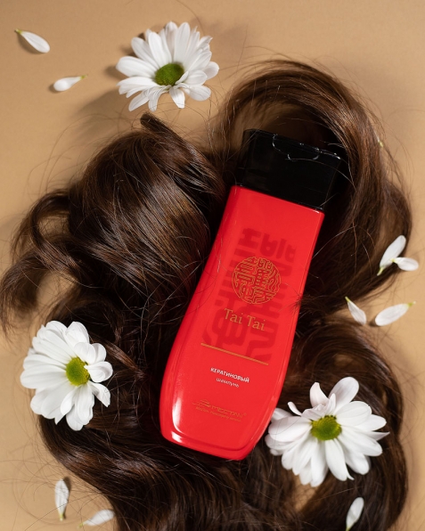 Массажными движениями нанесите шампунь на кожу головы и по всей длине волос, хорошо вспеньте. Оставьте на 2–3 минуты, затем промойте волосы достаточным количеством воды. Чтобы придать волосам дополнительную мягкость и усилить эффект, рекомендуем купить кератиновый шампунь вместе с бальзамом-эликсиром Tai Tai.