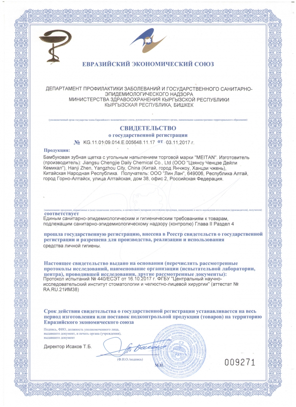 Зубная щетка из бамбукового волокна и угольным напылением.