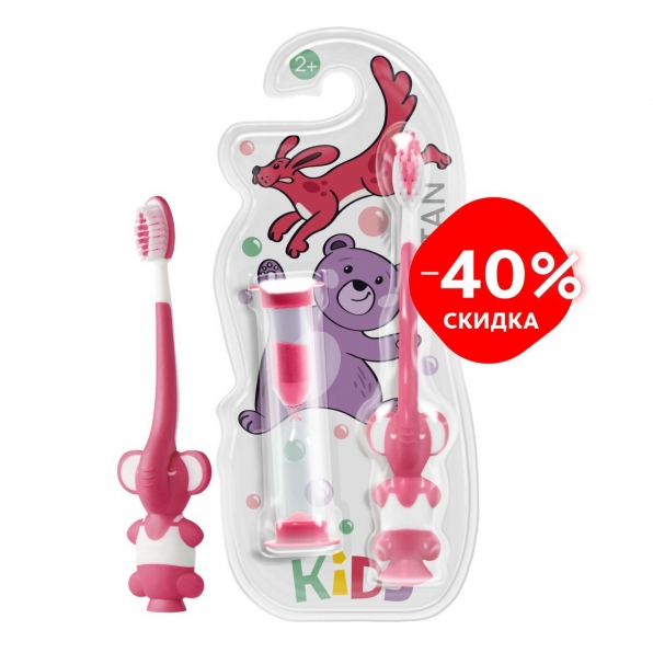 Ребёнку будет удобно держать щётку в ручке за счёт антискользящего покрытия, а присоска на основании позволяет удобно и гигиенично хранить вдали от взрослых щёток. А песочные часики научат ухаживать за полостью рта по всем правилам гигиены.
