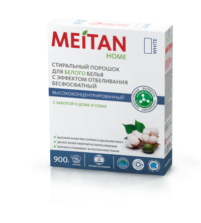 Концентрированный стиральный порошок для белого белья MEITAN HOME можно использовать для стирки вручную и в машине-автомате. Средство не содержит хлор, фосфаты и другие агрессивные химические компоненты, оказывает отбеливающий эффект. Применение бесфосфатных порошков позволяет внести большой вклад в сохранение окружающей среды и чистоты водных источников, куда непременно попадают фосфаты, которые не только загрязняют реки и озера, но и быстро изнашивают детали стиральных машин.