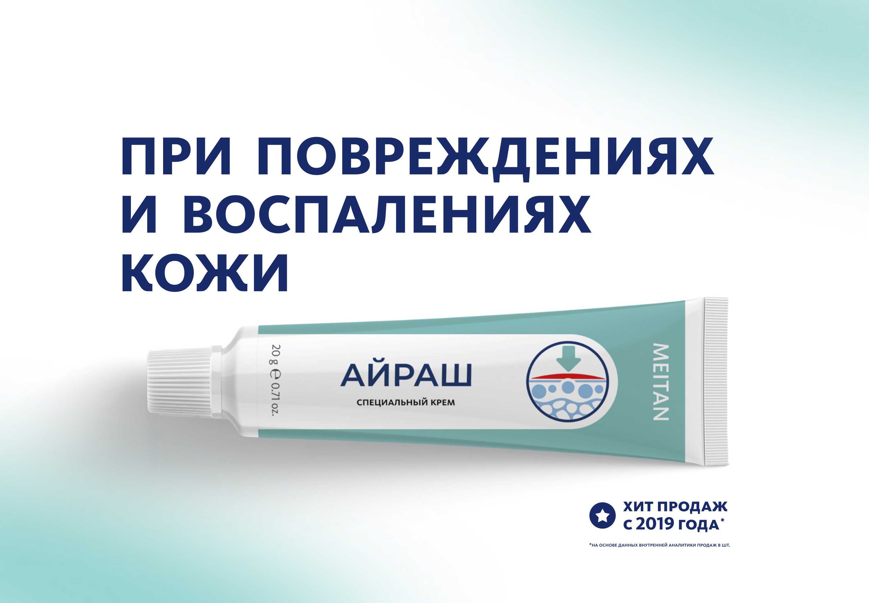 Для профилактики кожных заболеваний и заживления повреждений кожи. «Айраш» специальный крем для кожи быстро и безопасно обеззараживает место повреждения, снимает боль и воспаление, устраняет зуд, ускоряет процесс заживления и восстановления тканей.