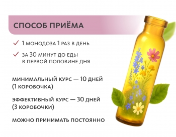 Принимать по 1 монодозе (10 мл) 1 раз в день, утром за 30 минут до еды.