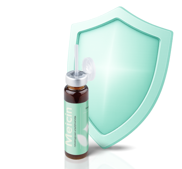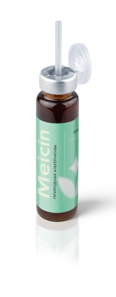 Биоплёнка — это оболочка, которую бактерии создают для своей защиты от внешних угроз: антибиотиков, иммунной системы и др. Meicin разрушает эту оболочку, и бактерии становятся уязвимы — организм может быстрее нейтрализовать патогены.