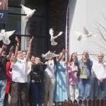 Юная вокалистка народного ансамбля «Тараторки» Лиза Витвицкая исполнила песню «Журавли», в этот момент сотрудники Компании запустили в небо белых голубей, как символ памяти о тех, кто подарил нам светлое будущее и мирное небо над головой.