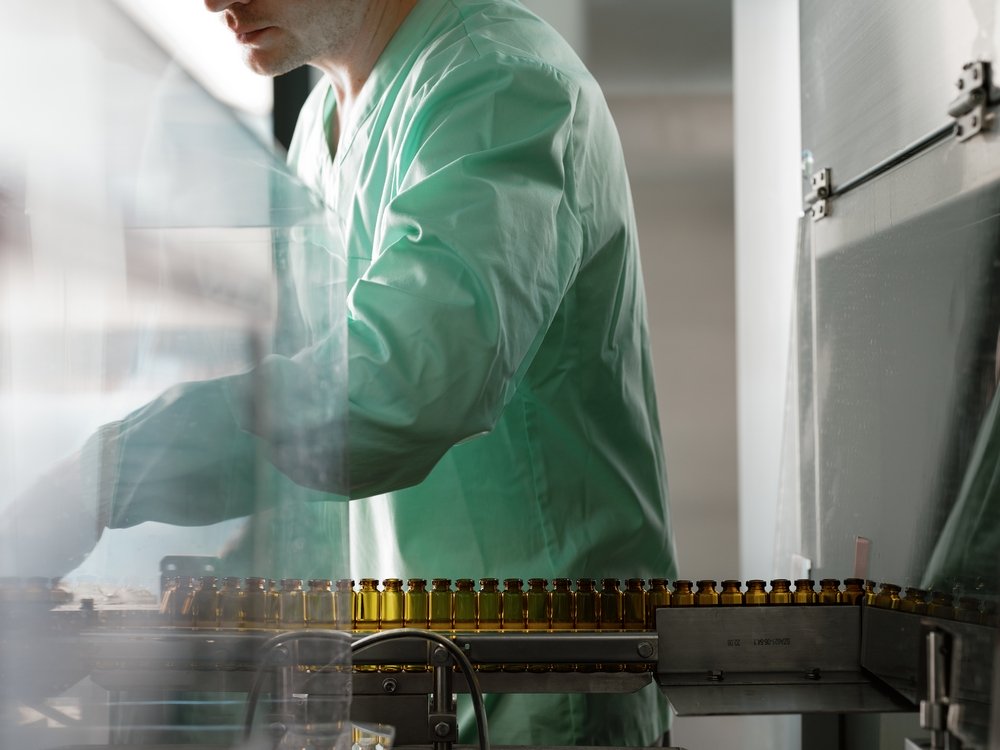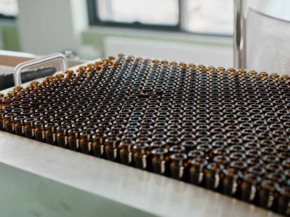- Очищенные и стерилизованные бутылочки поступают на линию розлива, где они наполняются новым продуктом в условиях чистых помещений, соответствующих стандартам производства фармацевтики.