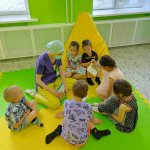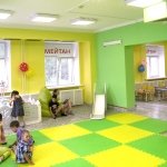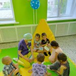 В этом филиале были отремонтированы и обустроены сразу две смежные комнаты. Первая – для подвижных игр и просмотра любимых мультфильмов: на полу теперь мягкое комфортное покрытие, по периметру – мини горка, качели, волейбольная стойка, на стене – плазменная панель, для отдыха – уютные кресла современного дизайна и мягкий диван. Вторая зона предназначена для творчества и развивающих игр: здесь стоят столы и стулья, магнитно-маркерная доска, на полках стеллажей – куклы, машинки, настольные игры, альбомы для рисования, краски и фломастеры – все для веселых игр и ярких эмоций.