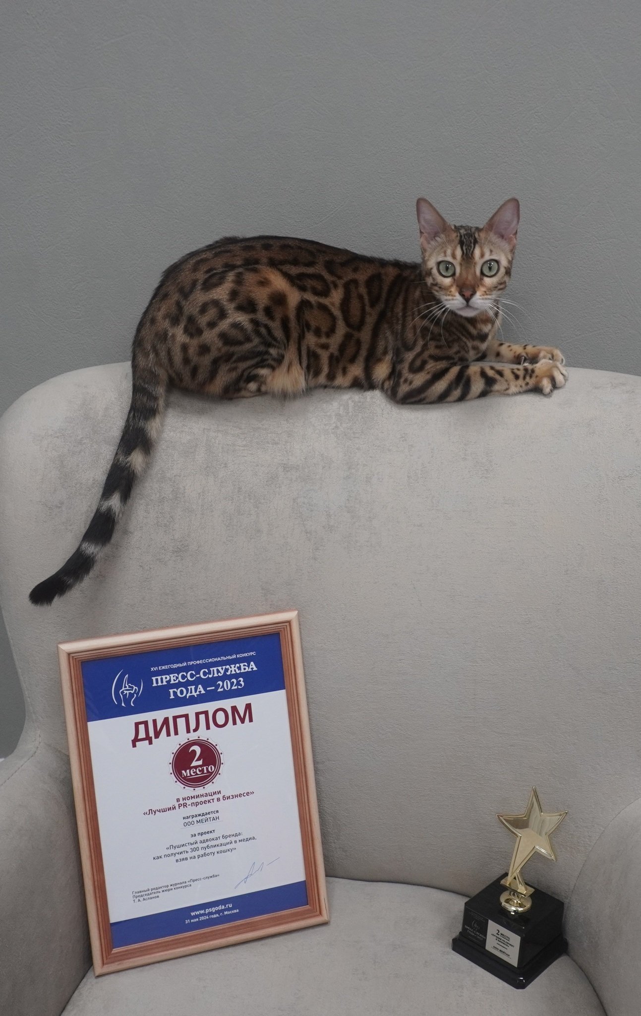 Компания отмечена дипломом II степени в номинации «Лучший PR-проект в бизнесе» с кампанией «Пушистый адвокат бренда: как получить 300 публикаций в медиа, взяв на работу кошку».