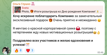 Розыгрыш был приурочен ко Дню рождения Компании. Провели эфир – Оксана Мальцева, Директор по развитию сети Консультантов и Татьяна Завадская, бизнес-тренер Компании.