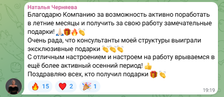 Среди Консультантов, которые приняли участие в акциях бизнеса в периоды – с 1 по 10 июня, с 1 по 10 июля, с 11 по 20 июля – Компания провела розыгрыш серии эксклюзивных подарков: