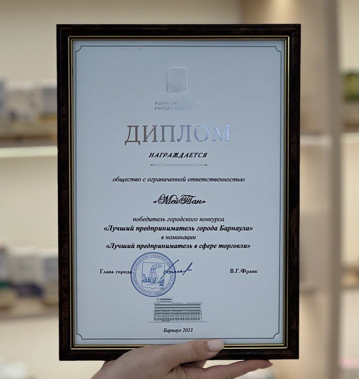 «Администрацию города радует, что такая компания, как МейТан, расположена в Барнауле. В рамках собственного благотворительного проекта компания открывает игровые комнаты в детских больницах по всей России, а также участвует в благоустройстве города, создает рабочие места. Это ценно и важно», — такими словами председатель комитета по развитию предпринимательства, потребительскому рынку и вопросам труда администрации г.Барнаула Наталья Кротова поздравила Компанию с победой в конкурсе «Лучший предприниматель Барнаула» в номинации «Лучший предприниматель в сфере торговли».