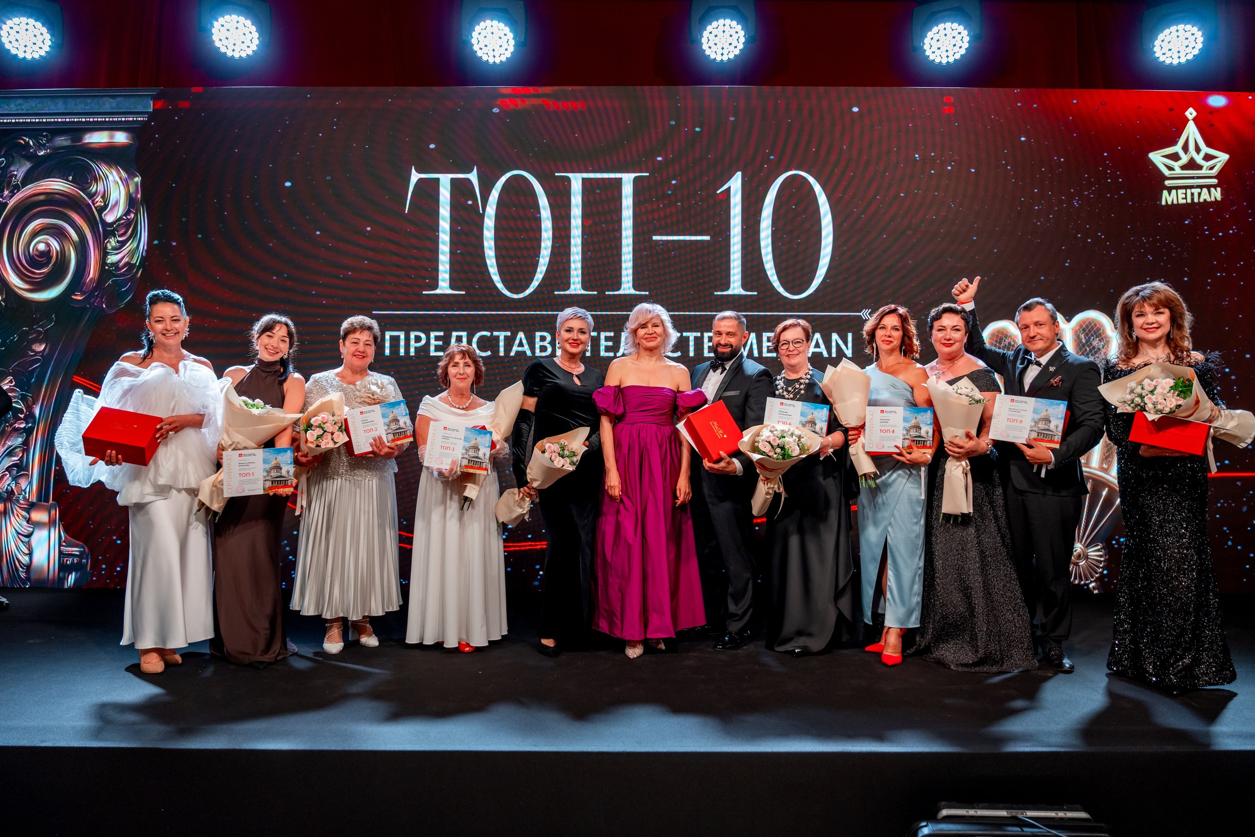 Еще семь Партнеров поднялись на главную сцену Дня рождения МейТан в Санкт-Петербурге за тем, чтобы получить Лидерские Знаки Отличия в свои коллекции. Это авторские ювелирные украшения за впервые достигнутые статусы – от Лидер-Директора до MeiTan Global Expert.