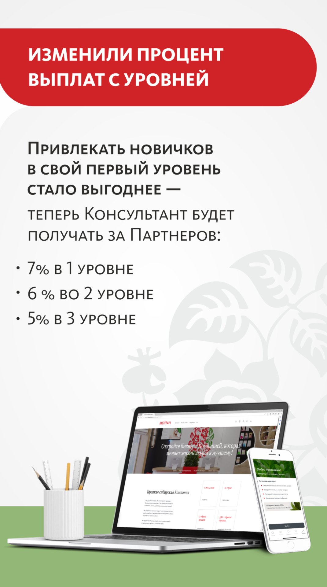 Одно из обсуждаемых и ожидаемых событий в Компании этой весной – изменение в ценообразовании МейТан. Кроме этого, с 1 марта в Компании действует обновленный Маркетинг-План с новыми программами лояльности.