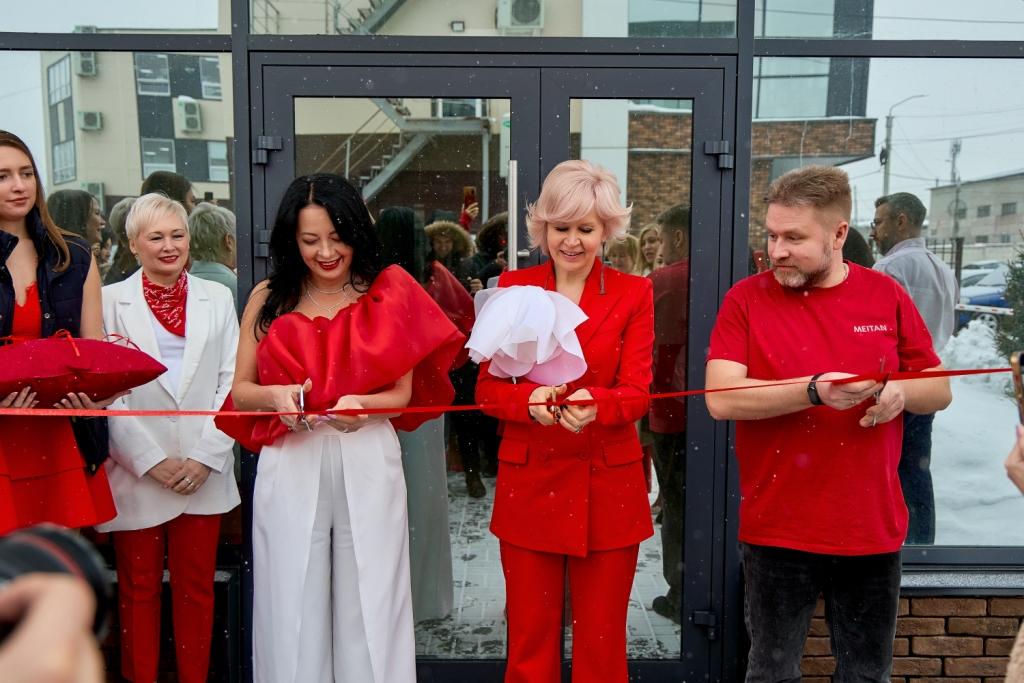 Красную ленту перерезали Любовь Леванюк (Президент МейТан), Виталий Царев (Руководитель отдела научных разработок МейТан) и Ирина Зарипова (резидент Президентского Совета, ТОП-Лидер Компании МейТан, Глава комитета по развитию Сети Консультантов и активному рекрутингу, Руководитель Регионального Бизнес-Центра в Уфе и Офиса продаж МейТан в Казани).