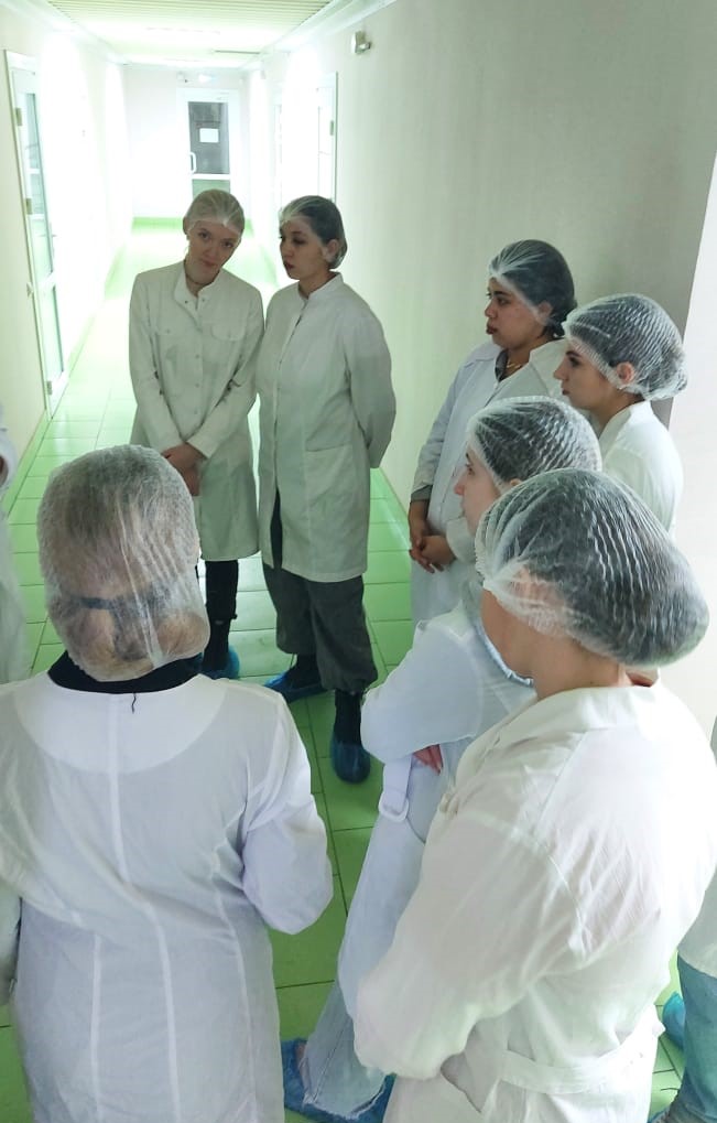 Экскурсию провела Светлана Сергеева, заведующая отделом контроля качества. Студенты задавали ей много вопросов, касающихся составов и безопасности продукции МейТан, а также особенностей проектирования технологических процессов.