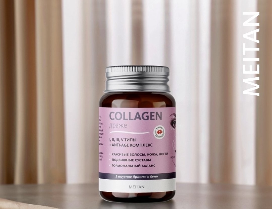 «Коллагеновое драже от МейТан для тех, кто не хочет стареть, боится возрастных изменений или уже чувствует их приближение. Драже – это абсолютно новый подход к красоте, здоровью и молодости. Наша форма усилена: в ней не только коллаген, а еще – фитоэстрогены и anti-age–комплекс.