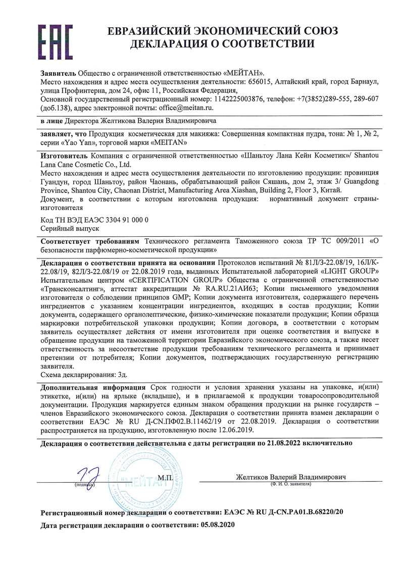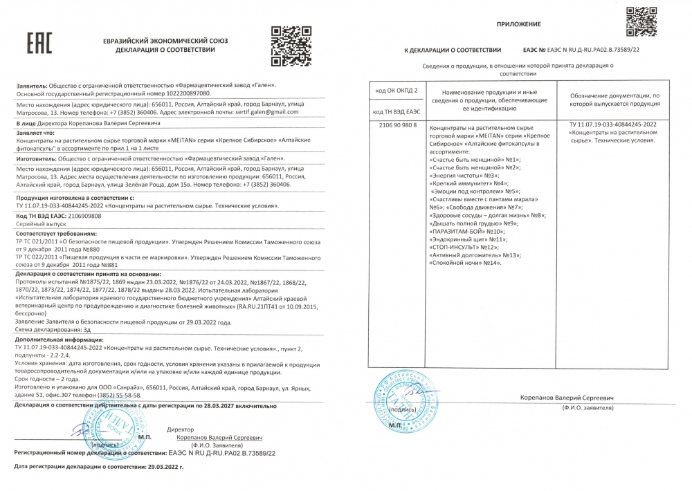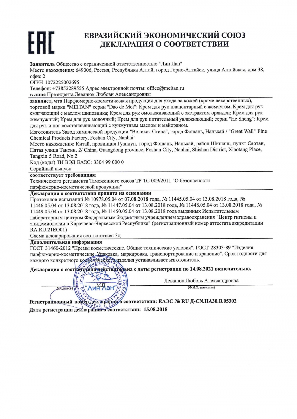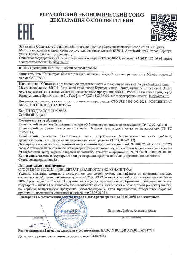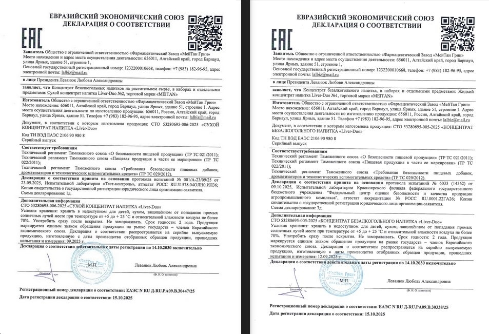Продукция МейТан выпускается с соблюдением международных стандартов производства и контроля качества GMP и ISO 9001.