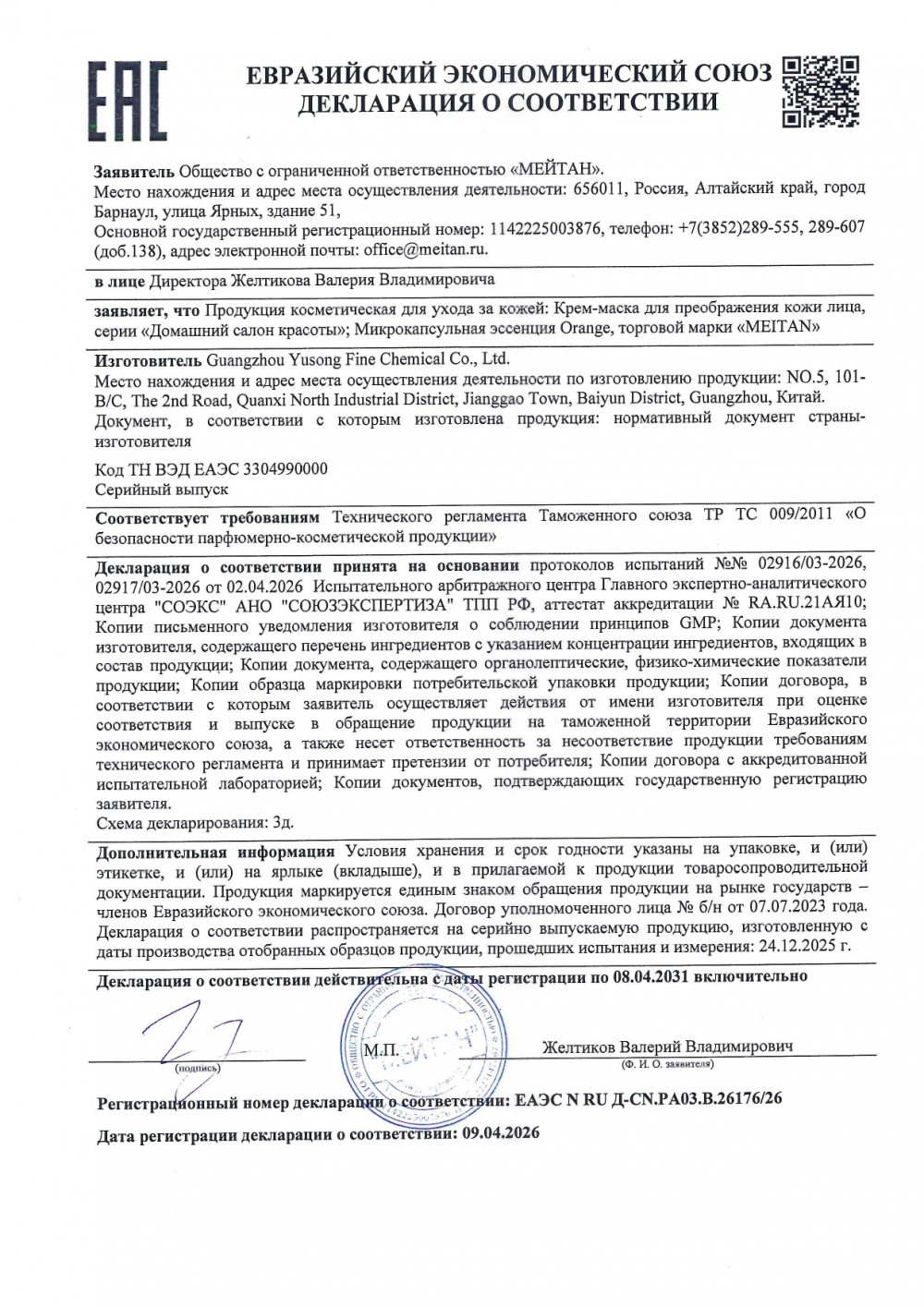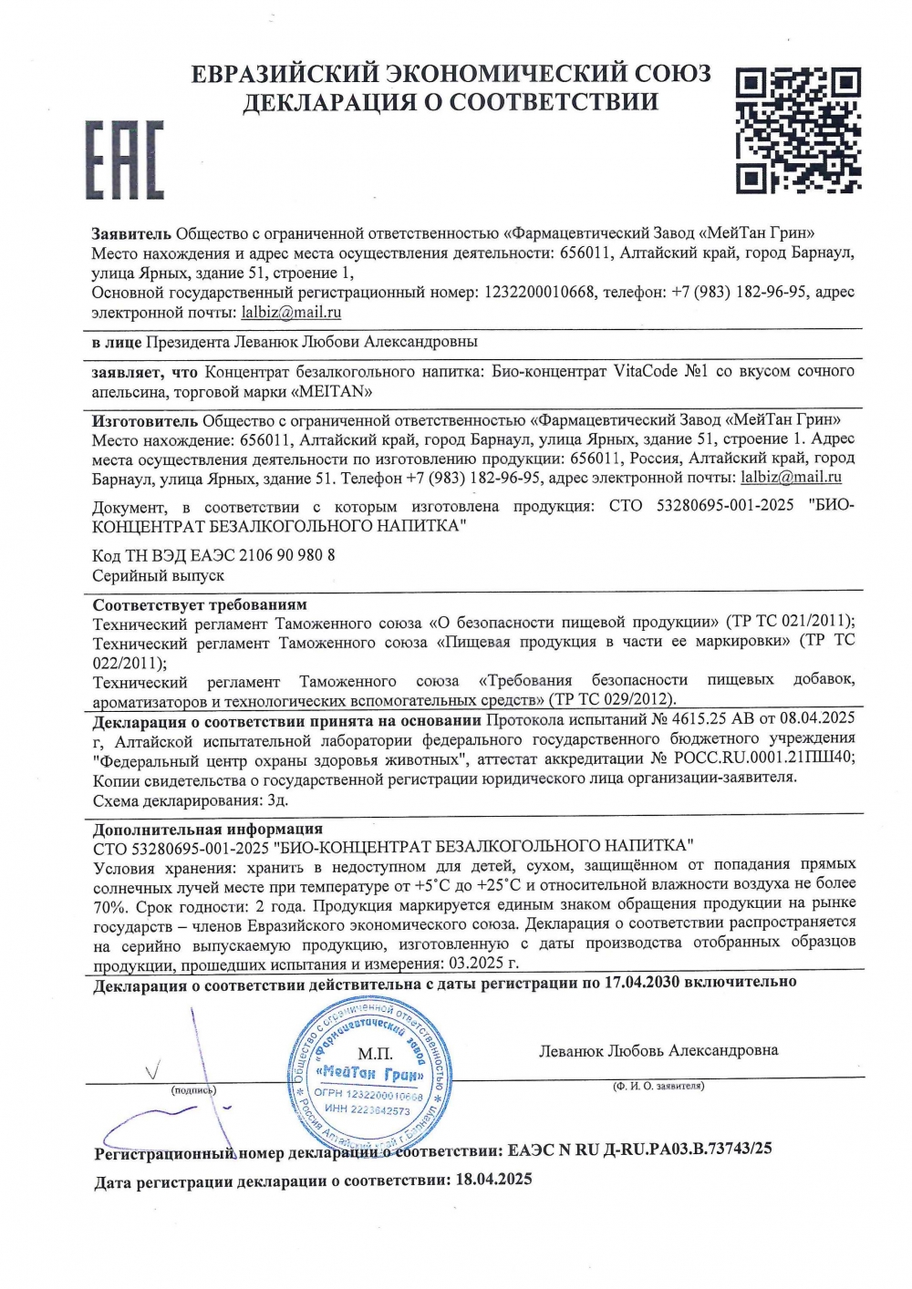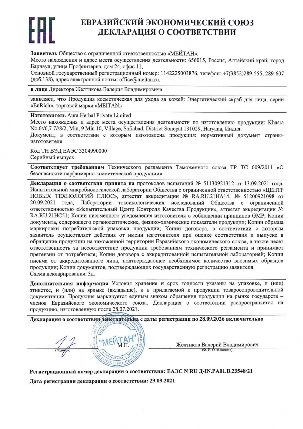 Продукция МейТан выпускается с соблюдением международных стандартов производства и контроля качества GMP и ISO 9001.