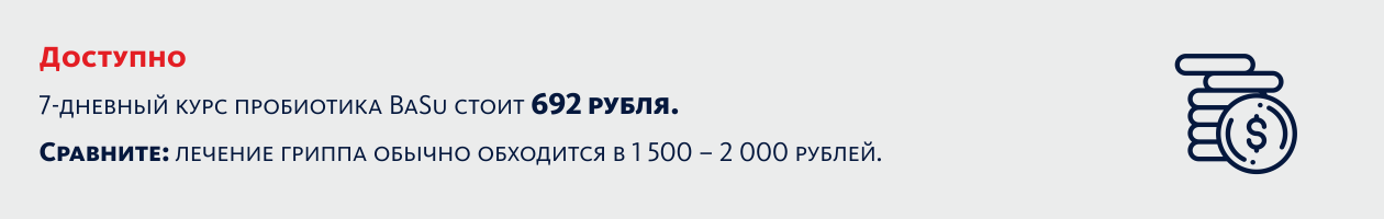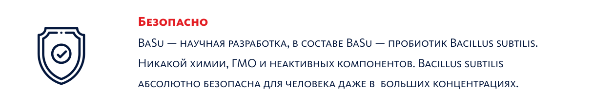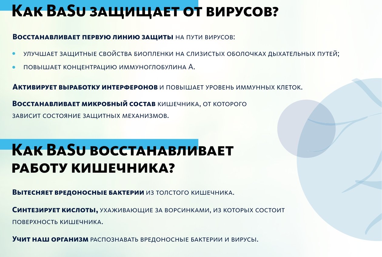 В основе иммунного пробиотика BaSu - природный штамм бактерии Bacillus subtilis (сенная палочка), которая известна своими свойствами восстанавливать микрофлору кишечника и повышать защитные силы организма.