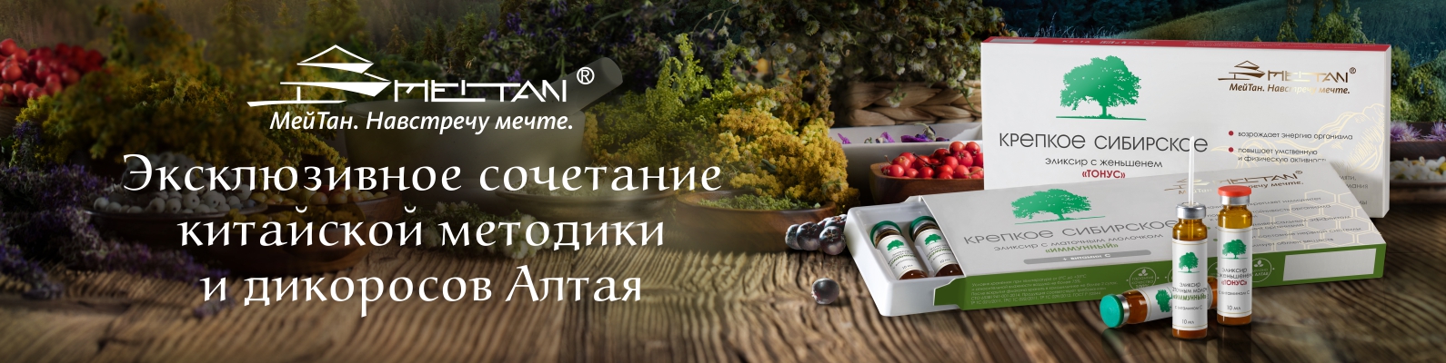 Подарите заряд бодрости, а также защиту от хронических и острых заболеваний себе и своим близким. Пропивая курс эликсиров «Тонус» и «Иммунный» серии «Крепкое сибирское» от МейТан, почувствуйте на себе их целительную силу и поделитесь ей!